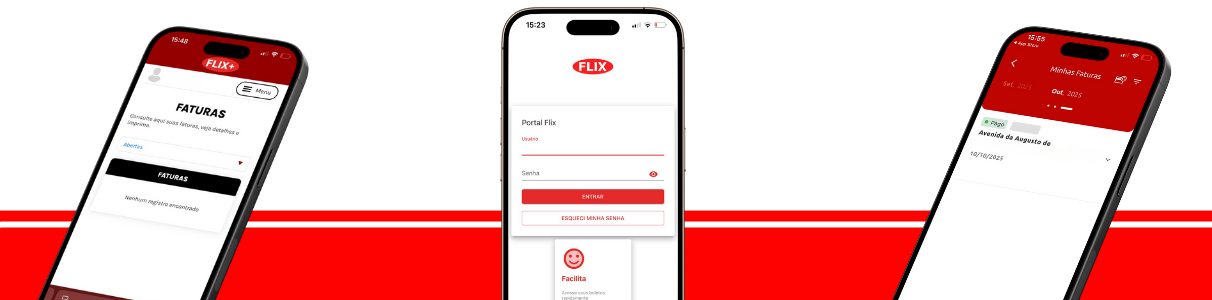 Também é possível acessar o portal Flix+, que permite baixar a fatura e realizar o pagamento via Pix, tudo em poucos cliques.